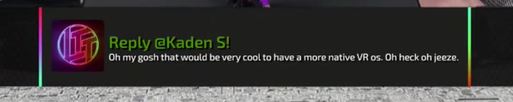 Oh my gosh that would be very cool to have a more native VR os. Oh heck oh jeeze. | Timestamp |  |