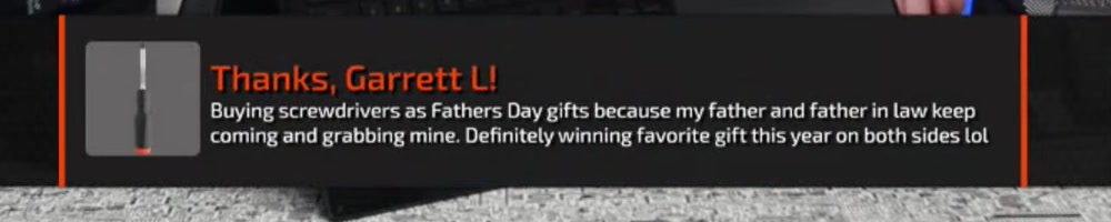 Buying screwdrivers as Fathers Day gifts because my father and father in law keep
