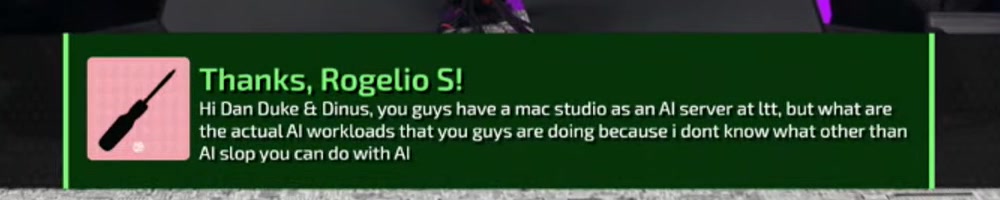 Hi Dan Duke & Dinus, you guys have a mac studio as an Al server at ltt, but what are