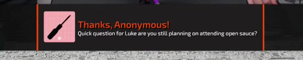 Quick question for Luke are you still planning on attending open sauce? | Timestamp |  |