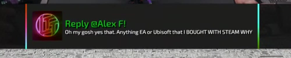 Oh my gosh yes that. Anything EA or Ubisoft that I BOUGHT WITH STEAM WHY | Timestamp |  |