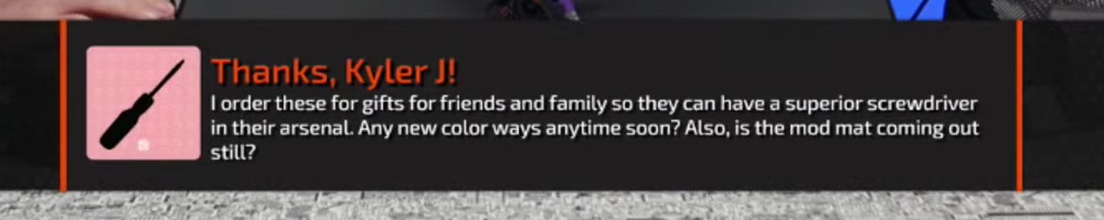 in their arsenal. Any new color ways anytime soon? Also, is the mod mat coming out