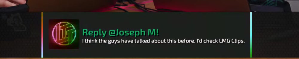 I think the guys have talked about this before. I'd check LMG Clips. | Timestamp |  |