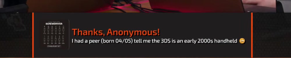 I had a peer (born 04/05) tell me the 3DS is an early 2000s handheld Ⓡ | Timestamp |  |