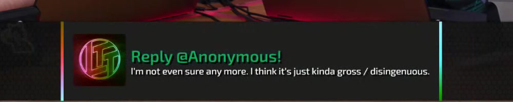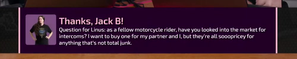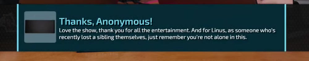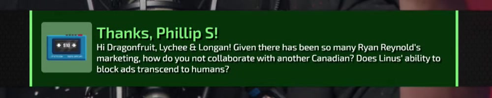 Love the show, thank you for all the entertainment. And for Linus, as someone who's