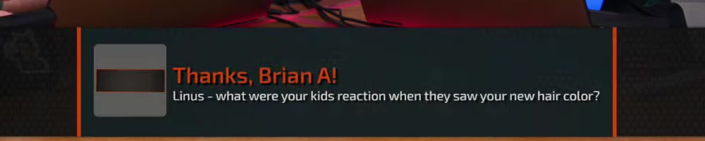 Linus - what were your kids reaction when they saw your new hair color? | Timestamp |  |