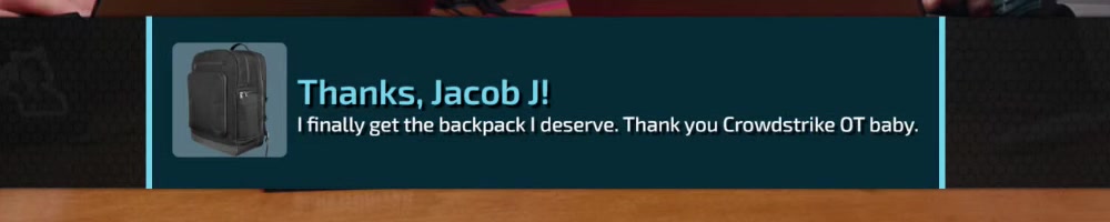 I finally get the backpack I deserve. Thank you Crowdstrike OT baby. | Timestamp |  |
