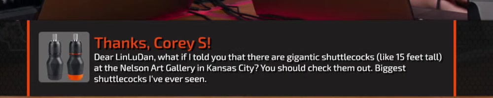 Dear LinLuDan, what if I told you that there are gigantic shuttlecocks (like 15 feet tall)