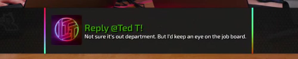 Not sure it's out department. But I'd keep an eye on the job board. | Timestamp |  |