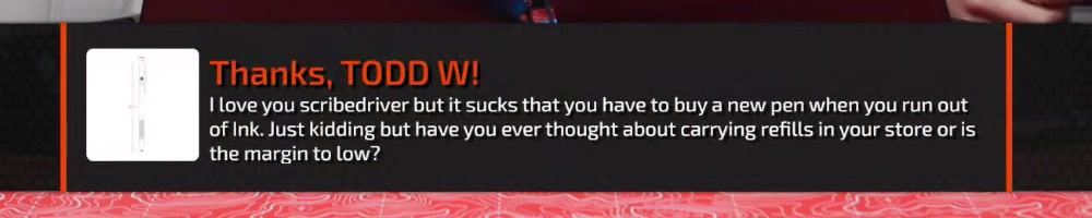 Thank you for creating the scribedriver as it's my favorite pen I've eve owned. Are