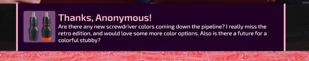 Are there any new screwdriver colors coming down the pipeline? I really miss the