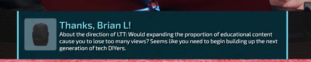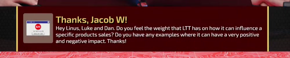 Hey Linus, Luke and Dan. Do you feel the weight that LTT has on how it can influence a