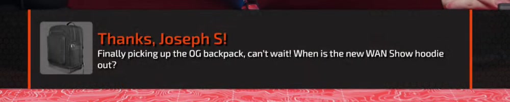 Finally picking up the OG backpack, can't wait! When is the new WAN Show hoodie