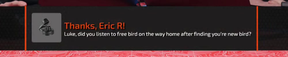 Luke, did you listen to free bird on the way home after finding you're new bird? | Timestamp |  |