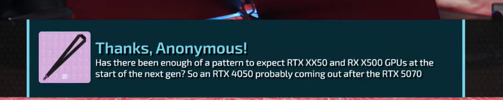 start of the next gen? So an RTX 4050 probably coming out after the RTX 5070 | Timestamp |  |