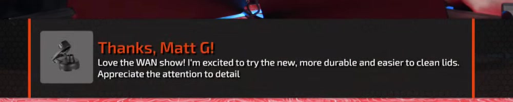 Love the WAN show! I'm excited to try the new, more durable and easier to clean lids.