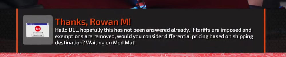Hello DLL, hopefully this has not been answered already. If tariffs are imposed and