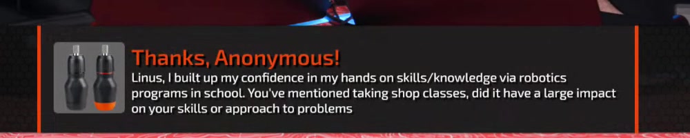 Linus, I built up my confidence in my hands on skills/knowledge via robotics