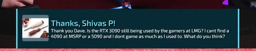Thank you Dave. Is the RTX 3090 still being used by the gamers at LMG? I cant find a