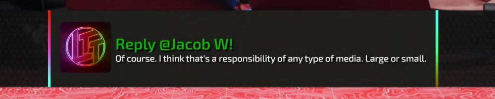 Of course. I think that's a responsibility of any type of media. Large or small. | Timestamp |  |