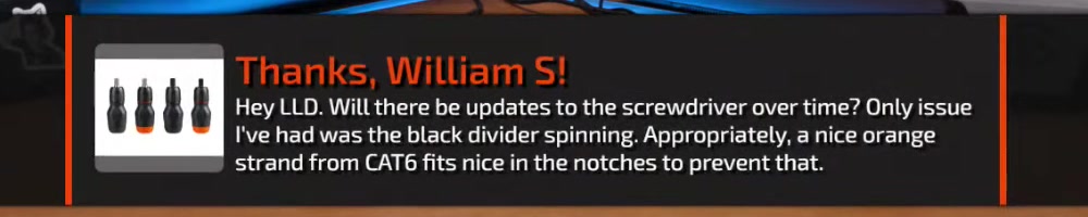 Hey LLD. Will there be updates to the screwdriver over time? Only issue