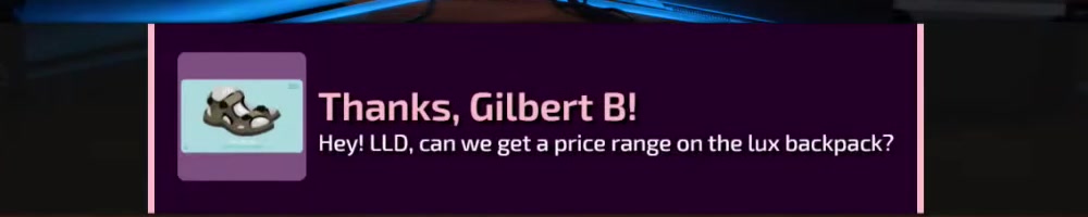 Hey! LLD, can we get a price range on the lux backpack? | Timestamp |  |