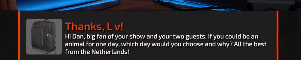 Hi Dan, big fan of your show and your two guests. If you could be an