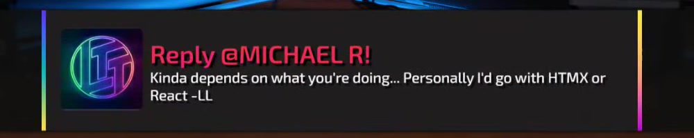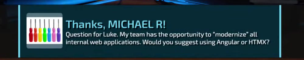 internal web applications. Would you suggest using Angular or HTMX? | Timestamp |  |