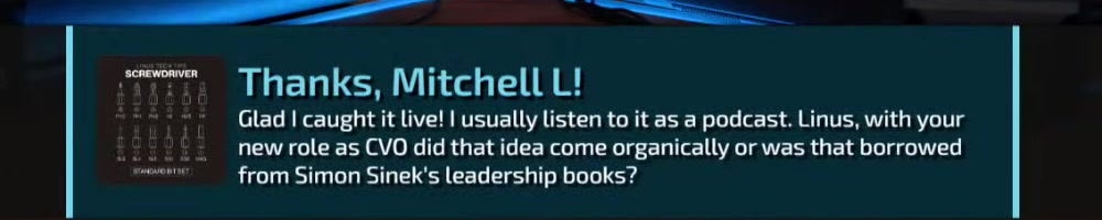 Glad I caught it live! I usually listen to it as a podcast. Linus, with your