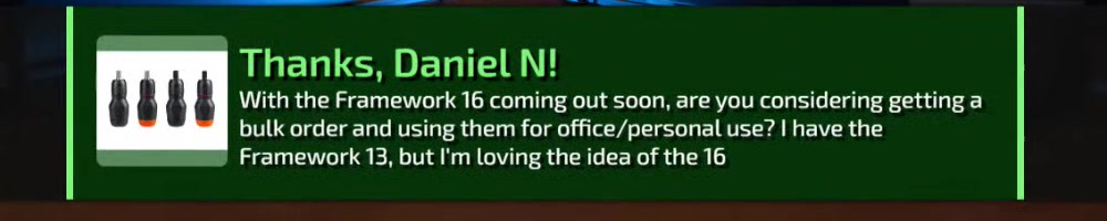 Framework 13, but I'm loving the idea of the 16 | Timestamp |  |
