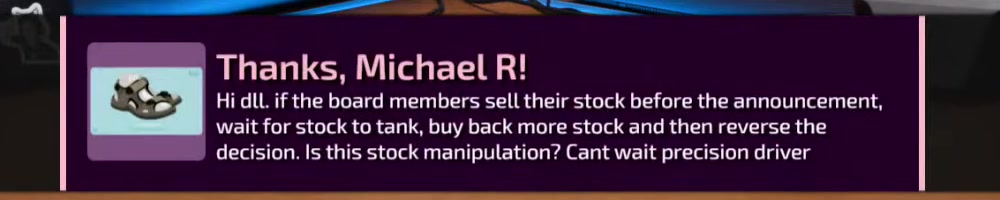 | MICHAEL R | message | Thanks, MICHAEL R!
