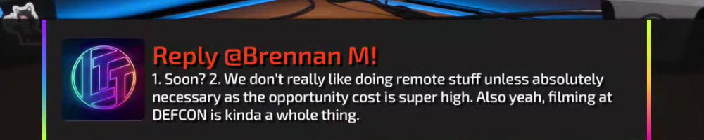 you did not hire him, for example no TechLinked? | Timestamp |  |