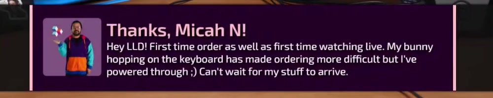 Hay LLD long time viewer frist time Merch Messager in about late but