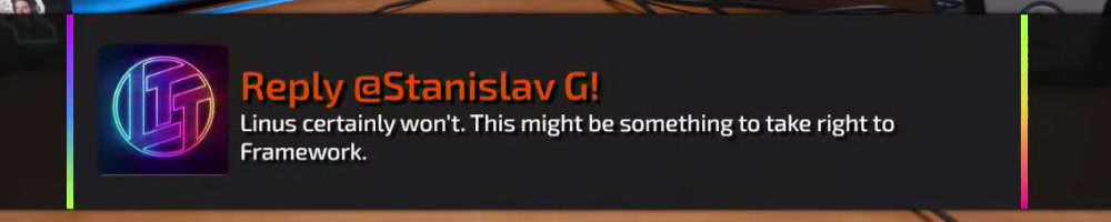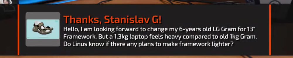 Do Linus know if there any plans to make framework lighter? | Timestamp |  |