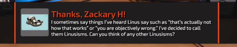 them Linusisms. Can you think of any other Linusisms? | Timestamp |  |