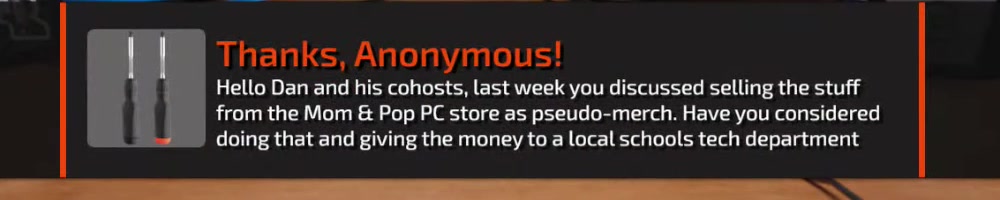 from the Mom & Pop PC store as pseudo-merch. Have you considered