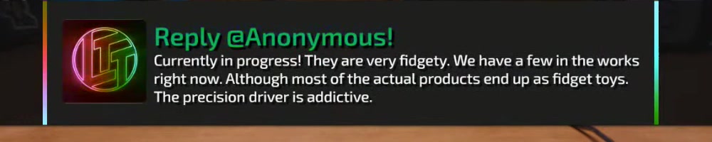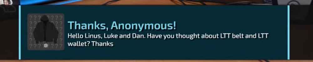 Hello Linus, Luke and Dan. Have you thought about LTT belt and LTT