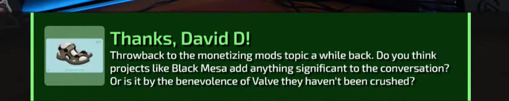 Or is it by the benevolence of Valve they haven't been crushed? | Timestamp |  |