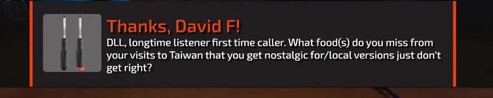 DLL, longtime listener first time caller. What food(s) do you miss from