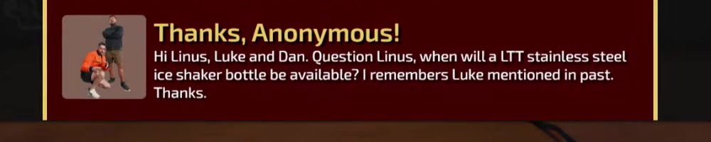 Hi Linus, Luke and Dan. Question Linus, when will a LTT stainless steel