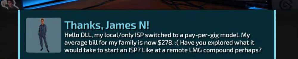 would take to start an ISP? Like at a remote LMG compound perhaps? | Timestamp |  |