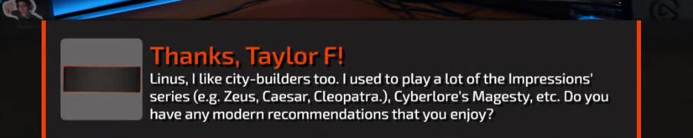 Linus, I like city-builders too. I used to play a lot of the Impressions'