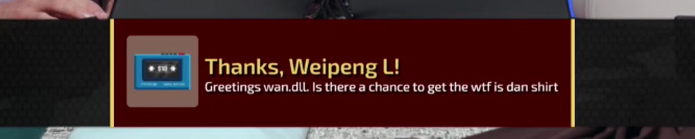Greetings wan.dll. Is there a chance to get the wtf is dan shirt | Timestamp |  |