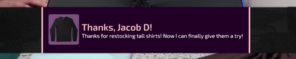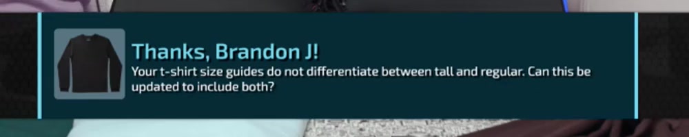 Thanks for restocking tall shirts! Now I can finally give them a try! | Timestamp |  |