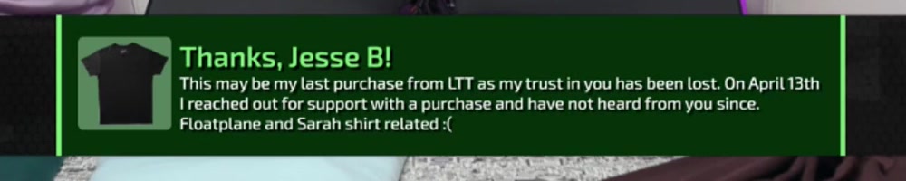 This may be my last purchase from LTT as my trust in you has been lost. On April 13th