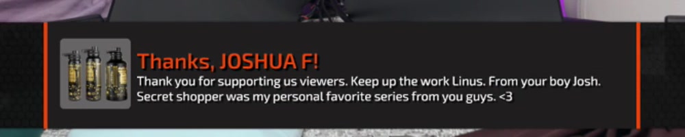 Thank you for supporting us viewers. Keep up the work Linus. From your boy Josh.