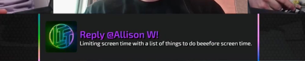 Limiting screen time with a list of things to do beeefore screen time. | Timestamp |  |