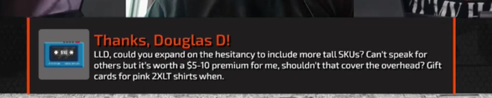 LLD, could you expand on the hesitancy to include more tall SKUs? Can't speak for