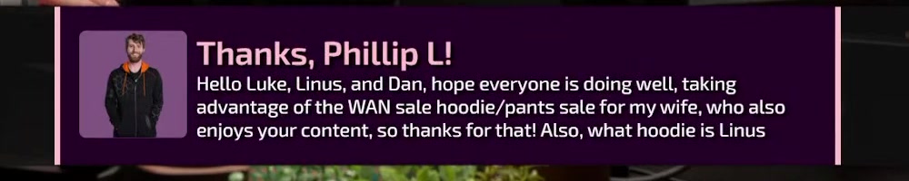 enjoys your content, so thanks for that! Also, what hoodie is Linus